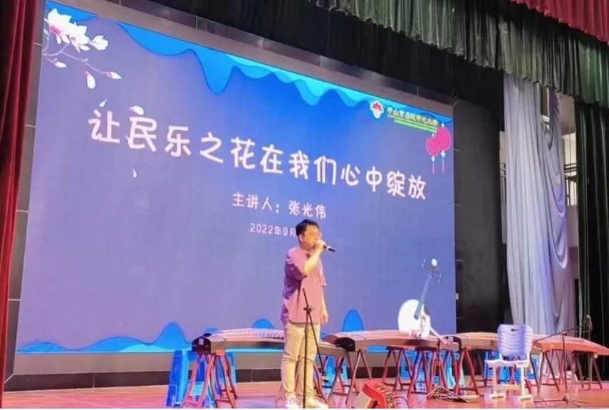 精彩的節(jié)目過后,張光偉老師《讓民樂之花在我們心中綻放》為題,告訴同學(xué)們“作為中華民族的兒女,更要好好了解本民族的樂器”,號召同學(xué)們從小加入到傳承中華優(yōu)秀傳統(tǒng)文化的大軍中來,引用習(xí)近平總書記強(qiáng)調(diào):“中華文化源遠(yuǎn)流長,積淀著中華民族最深層的精神追求,代表著中華民族獨(dú)特的精神標(biāo)識,為中華民族生生不息、發(fā)展壯大提供了豐厚滋養(yǎng)?!钡亩?,激勵(lì)同學(xué)們要做有傳統(tǒng)文化涵養(yǎng)的紅棉學(xué)子。