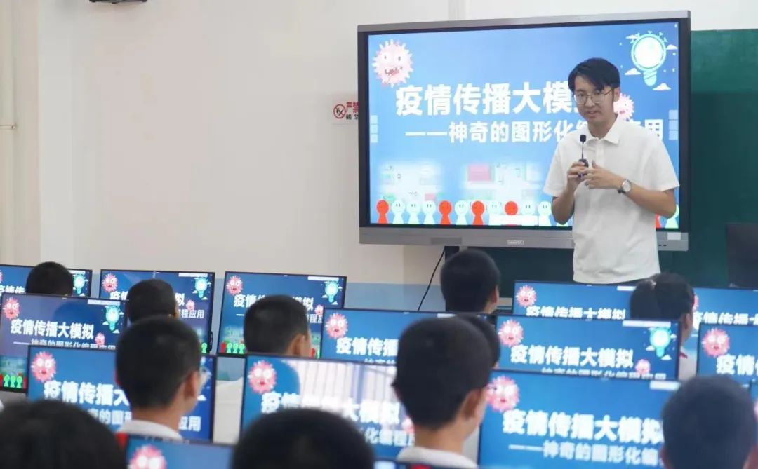 團校翠亨小學呂梓健老師在南雄市永康路中心小學送教課例為《疫情傳播大模擬——神奇地圖形化編程》,讓學生體驗編程對生活現(xiàn)象進行模擬的作用。
