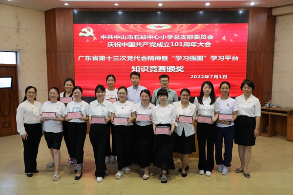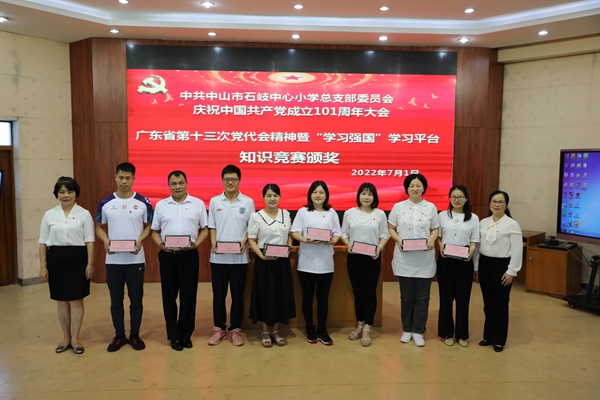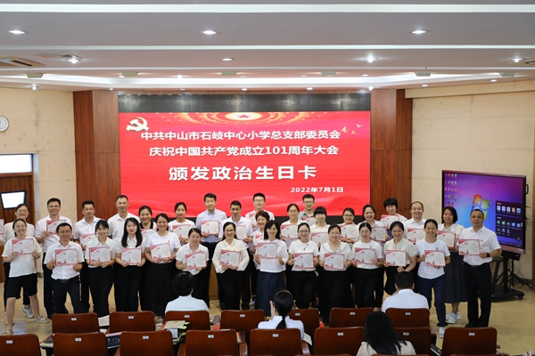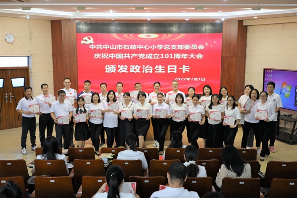 2022年7月1日上午,中共中山市石岐中心小學(xué)總支部委員會全體黨員在學(xué)校三樓階梯室隆重集會,慶祝中國共產(chǎn)黨成立101周年。