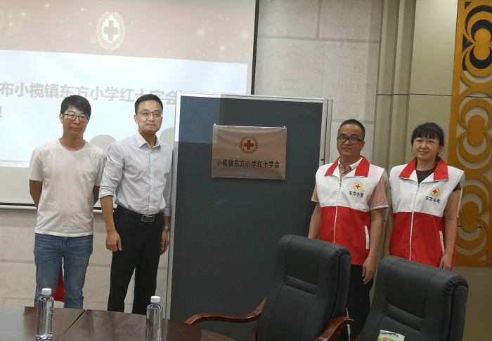 在全體成員熱烈的掌聲中,小欖鎮(zhèn)紅十字會秘書長何圣棕同志、小欖鎮(zhèn)紅十字會成員梁寶明同志、東方小學李正可校長、東方小學張巍副校長共同上臺進行揭牌儀式,正式宣布小欖鎮(zhèn)東方小學紅十字成立了!