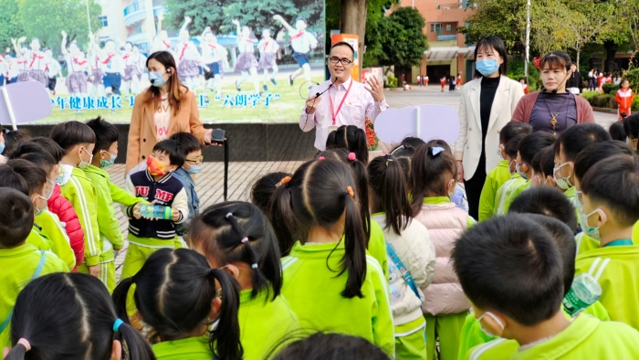 沐浴著春日的暖陽,李正可校長和全體行政到校門口迎接大小朋友的到來,李正可校長親切溫和地對偉才幼兒園老師、家長、小朋友的到來表示熱烈的歡迎。
