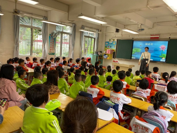 接著,孩子們走進寬敞明亮的一年級教室,和哥哥姐姐們同上一節(jié)課。他們進入了繪本、數(shù)學、音樂課堂,初步感受小學的學習生活。有序的課堂紀律,擺放整齊的學習用品,哥哥姐姐們端正的坐姿,上課時聚精會神,積極回答問題的樣子,讓他們感受到了小學課堂與幼兒園的不同。小朋友們也學著哥哥姐姐的樣子,坐姿端正、認真聽講,好像自己也是一名光榮的小學生了。活動的最后,幼兒園的小朋友與一年級的孩子們相互交流。