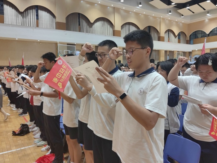 在距離2023年中考百日之際,坦洲實驗中學(xué)2023屆全體師生匯聚一堂,在中山市桂山中學(xué)體育館隆重舉行中考百日誓師大會。會場上,勵志的口號激動人心,誠摯的誓言氣震寰宇。