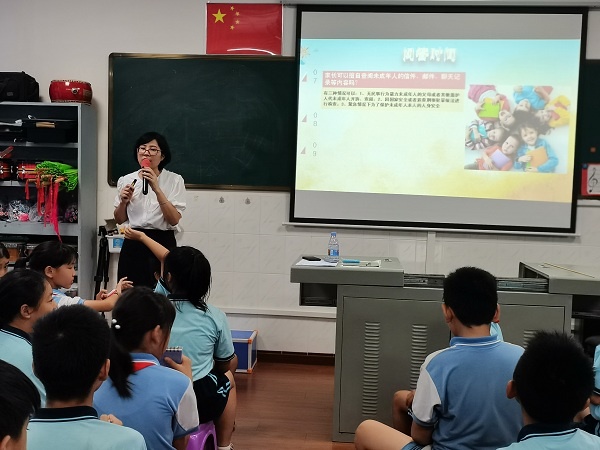 為貫徹落實(shí)“關(guān)愛(ài)女童 護(hù)苗成長(zhǎng)”保護(hù)女童人身權(quán)益三年行動(dòng),落實(shí)2021年中山市民生實(shí)事“童心同行 護(hù)苗成長(zhǎng)”兒童權(quán)益保護(hù)項(xiàng)目,維護(hù)婦女兒童合法權(quán)益,加強(qiáng)兒童人身安全宣傳教育,9月15日中山市婦聯(lián)聯(lián)合坦洲鎮(zhèn)安阜社區(qū)在安阜小學(xué)開(kāi)展“童心同行 護(hù)苗成長(zhǎng)”兒童權(quán)益保護(hù)百場(chǎng)公益宣講活動(dòng)。來(lái)自廣東孚律師事務(wù)所的肖靜律師給同學(xué)們帶來(lái)了題為“關(guān)愛(ài)孩子 護(hù)苗助長(zhǎng)”的精彩法律講座。