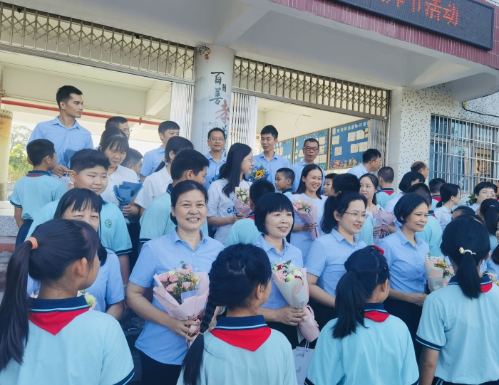 “啊…每當(dāng)想起你,敬愛(ài)的好老師……”活動(dòng)伊始,由六(1)班表演節(jié)目《每當(dāng)我走過(guò)老師窗前》,以此表達(dá)同學(xué)們對(duì)老師無(wú)限的敬意與感激之情。隨后,全體教師齊聚操場(chǎng),由少先隊(duì)員代表為老師們獻(xiàn)上節(jié)日美好的祝福,送上鮮花以及為老師精心準(zhǔn)備的禮物。