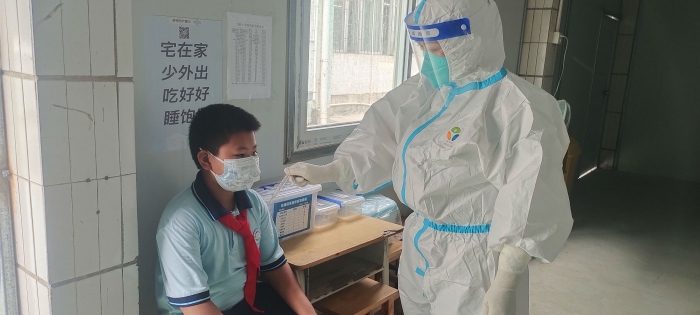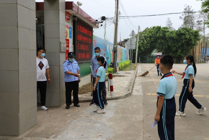 此次演練包含校園大門學生測溫、初篩陽性學生處置、密切接觸的師生的秩序管理、課室消毒、后續(xù)與家長跟蹤聯(lián)絡等環(huán)節(jié)。演練以學校接到鎮(zhèn)疾控中心通知,校內(nèi)某班學生為新冠病毒核酸初篩陽性開始,將學校啟動新冠肺炎疫情應急預案后各部門的溝通聯(lián)系,組織隔離、消毒防護等一系列流程認真進行了演練。