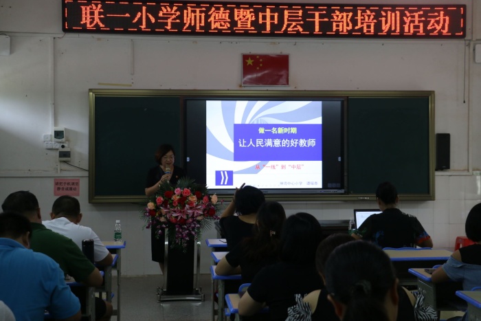 為更好落實立德樹人的根本任務,踐行社會主義核心價值觀,規(guī)范教師從教行為,遵守法律法規(guī),努力培養(yǎng)有扎實學識、有仁愛之心、有理想信念的教師隊伍。2020年8月31日下午2:30,聯(lián)一小學組織開展師德暨中層干部培訓活動。