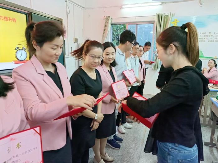 隨后,楊興副局長、陳麗娥副主任、鎮(zhèn)教研員分批為指導教師頒發(fā)了聘書。