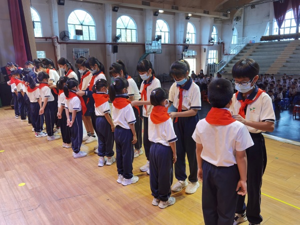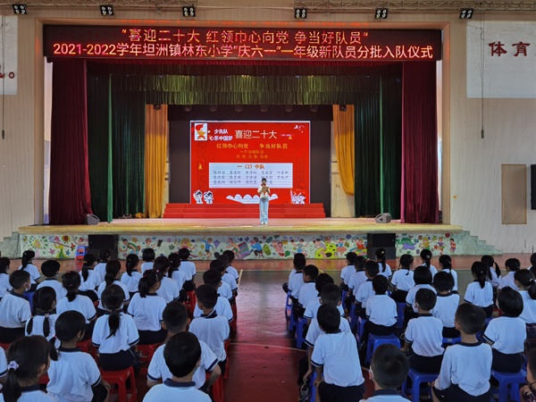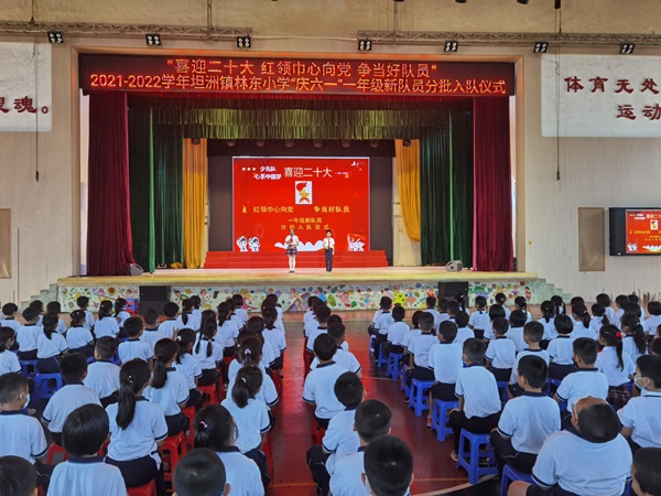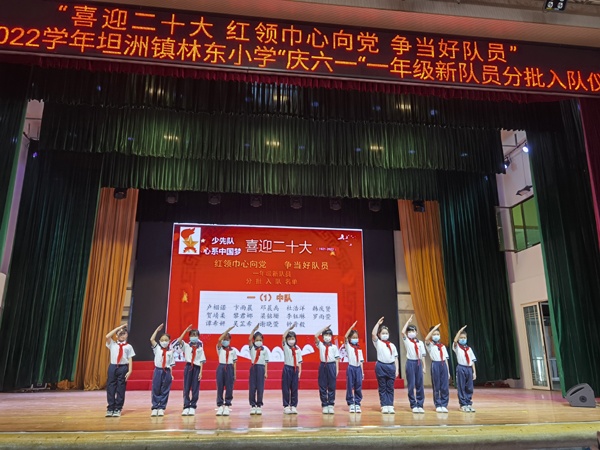 2022年5月30日下午,為迎接黨的二十大召開(kāi),教育學(xué)生繼承黨的光榮傳統(tǒng),發(fā)揚(yáng)中國(guó)少年先鋒隊(duì)的先鋒模范作用,培養(yǎng)學(xué)生健康向上、積極進(jìn)取的精神,坦洲鎮(zhèn)林東小學(xué)舉辦了簡(jiǎn)單而隆重的“喜迎二十大,紅領(lǐng)巾心向黨,爭(zhēng)當(dāng)好隊(duì)員”一年級(jí)新隊(duì)員分批入隊(duì)儀式。