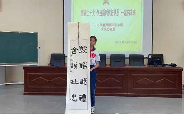 為喜迎二十大,爭當(dāng)新時代好隊員,銘記習(xí)近平爺爺對少先隊員們的殷殷囑托,從小樹立遠大志向,一起向未來, 4月27日下午,坦洲鎮(zhèn)林東小學(xué)少工委在多媒體教室舉行新一屆大隊委競選活動。本次競選堅持“公平、公開、公正”的原則,為每一位有上進心的少先隊員提供了發(fā)展個性、施展才能的平臺。