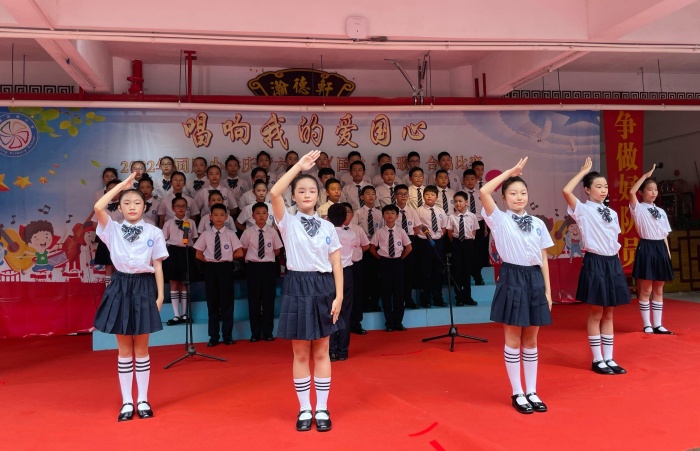 5月31日下午,坦洲鎮(zhèn)同勝小學(xué)舉行了以“唱響我的愛國心”為主題的《國歌·隊歌》合唱比賽。