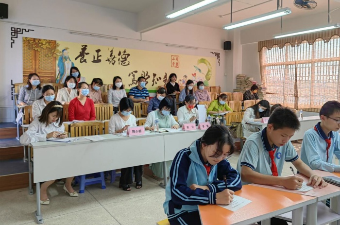 此次督導(dǎo)會(huì)議有以下三項(xiàng):第一項(xiàng),坦洲鎮(zhèn)同勝小學(xué)王書穎老師執(zhí)教《六月二十七日望湖樓醉書一課》。王書穎老師對(duì)文本解讀到位,課堂設(shè)計(jì)精巧,每個(gè)環(huán)節(jié)緊緊相扣,層層遞進(jìn)。整節(jié)古詩吟誦課,老師、學(xué)生和文本三者交融。王書穎老師通過示范吟詠,指導(dǎo)學(xué)生依字行腔,依義行調(diào)吟詠古詩,帶領(lǐng)學(xué)生感受古詩吟詠的獨(dú)特魅力;讓古詩的語言美、音韻美、內(nèi)涵美、朦朧美展示在聽課老師面前,讓聽課老師享受課堂,心曠神怡!第二項(xiàng),督導(dǎo)組查閱資料。督導(dǎo)組成員認(rèn)真查閱我校傳統(tǒng)文化特色學(xué)校創(chuàng)建的相關(guān)資料,對(duì)我校開展的各項(xiàng)活動(dòng)表示肯定。第三項(xiàng),骨干教師座談。座談會(huì)上,督導(dǎo)小組成員首先對(duì)王書穎老師所執(zhí)教的《六月二十七日望湖樓醉書》進(jìn)行了點(diǎn)評(píng)。其次,為我校老師提出傳統(tǒng)文化特色學(xué)校中遇到的困惑進(jìn)行解答,分享豐富的經(jīng)驗(yàn),鼓舞了老師的信心。
