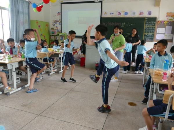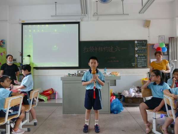 接下來(lái),每班開展了花式多樣,生動(dòng)有趣的 六一慶?;顒?dòng)。看!隊(duì)員們臉上燦爛的笑容;聽!隊(duì)員們悅耳的歌聲。最受孩子們歡迎的是美食分享會(huì)??茨且粡垙埿∽煲贿叧灾瑢W(xué)間分享的美食,還一邊歡樂(lè)的與老師、同學(xué)們交流玩耍,畫面多么的愜意??!面對(duì)這樣美好的畫面,攝影師老師趕緊按動(dòng)快門,一張張的照片留下了這個(gè)夏天、這個(gè)六一最美好的記憶。