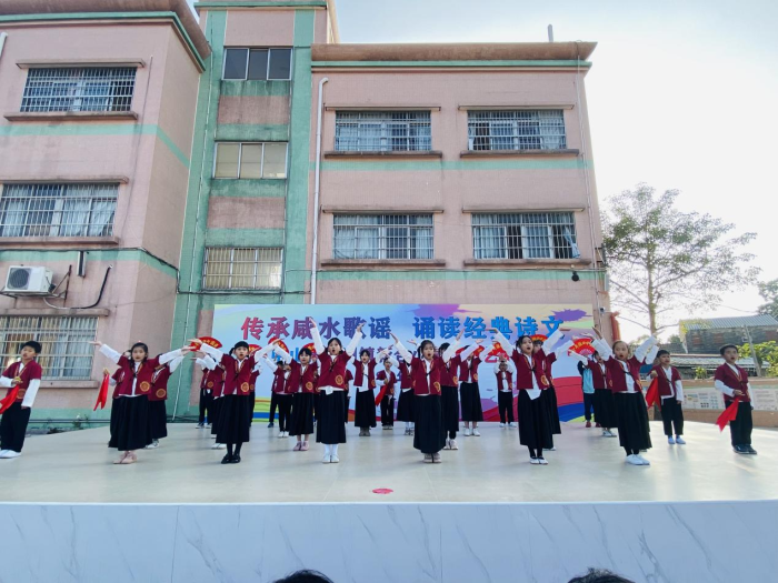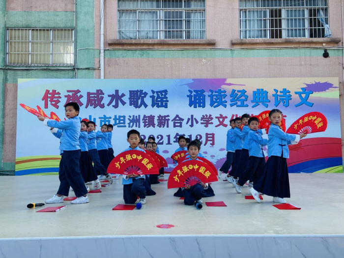 12月30日下午,冬日暖陽灑滿整個校園,坦洲鎮(zhèn)新合小學(xué)2021年文化藝術(shù)節(jié)在學(xué)校操場正式拉開序幕。本次藝術(shù)節(jié)分為“傳承咸水歌謠”和“誦讀經(jīng)典詩文”兩個部分,由中山市民歌手吳連友老師、吳容妹老師,新合小學(xué)的范田華校長、盧國慶書記、張云主任、陳曉丹老師擔(dān)任節(jié)目評委,旨在傳承非物質(zhì)文化遺產(chǎn)咸水歌,提高學(xué)生的語文素養(yǎng),讓孩子們在舞臺上展現(xiàn)自我的風(fēng)采。