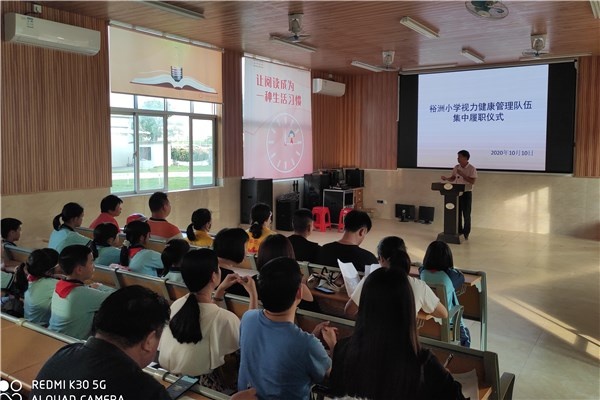 為貫徹落實習(xí)近平總書記關(guān)于學(xué)生近視問題的重要指示精神和教育部等八部門印發(fā)的《綜合防控兒童青少年近視實施方案》要求,切實落實保護(hù)學(xué)生視力的相關(guān)工作事宜,10月10日,裕洲小學(xué)舉行了視力健康管理隊伍集中履職儀式。
