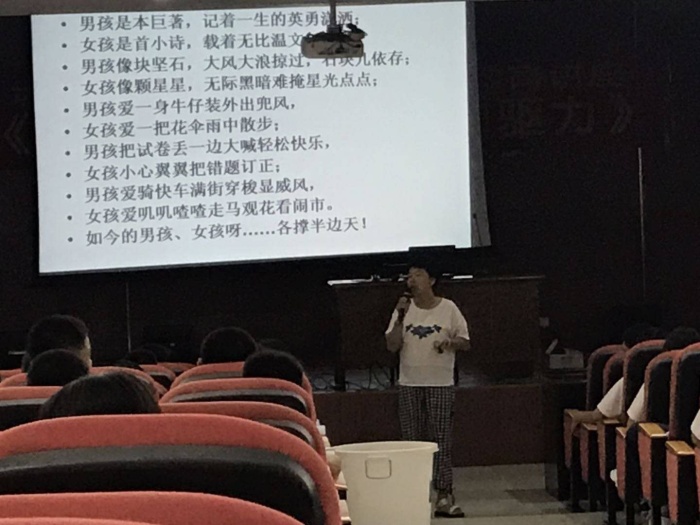 吳老師先從一份青春期小調(diào)查開始,引起學(xué)生對(duì)接下來的講座產(chǎn)生興趣,讓學(xué)生對(duì)自己上初中以來學(xué)習(xí)、生活、交往一一回顧,審視自己的不一樣,特別是對(duì)異性交往的不一樣。接著視頻《男孩女孩同等重要》說明了不要因性別的不同而產(chǎn)生誤會(huì)。有趣的小品《不差錢》、《像女孩那樣》更說明社會(huì)對(duì)不同性別角色的要求。以互動(dòng)形式讓學(xué)生尋找青春期各種變化,同齡人的日記讓學(xué)生感到青春期的煩惱是每個(gè)人都會(huì)有的,視頻《初戀這件小事》剪輯讓學(xué)生理解對(duì)異性產(chǎn)生好感是正常的,但是身體發(fā)育的成熟絕不意味著心理的成熟,所以對(duì)感情要慎重對(duì)待,理智處理。吳老師還引導(dǎo)學(xué)生正確認(rèn)識(shí)愛情與友情,遇到問題積極尋求指導(dǎo)幫助,順利過渡青春期。最后,就青春期所容易出現(xiàn)的問題,同學(xué)們積極發(fā)言,老師與同學(xué)們進(jìn)行了交流討論,并引導(dǎo)他們積極面對(duì),尋找解決問題的辦法。