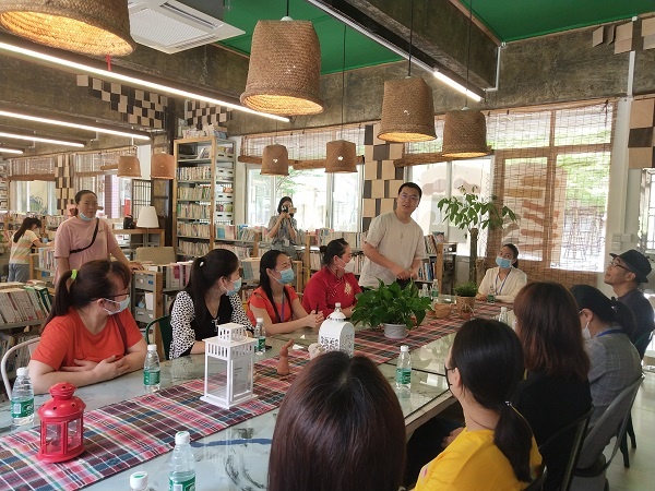 在4月23日——世界圖書日當(dāng)天,展覽工作組的領(lǐng)導(dǎo)和工作人員再次加班,精心準(zhǔn)備、熱情歡迎受邀的學(xué)生家長及社區(qū)居民的參觀。好幾位家長心情激動,提前半個小時就來到了學(xué)校。有的家長一走進(jìn)閱覽室的大門,第一次看到學(xué)校有如此優(yōu)雅、溫馨的閱讀環(huán)境,禁不住發(fā)出“哇”的驚嘆聲。活動開始,先由本次展覽的策劃人也是學(xué)校繪本閱讀課教師李丹致歡迎辭,然后為參觀者進(jìn)行了導(dǎo)賞。在隨后的參觀中,有的孩子指著自己的作品向家長介紹,家長開心地把雙眼湊到作品前仔細(xì)欣賞;有的孩子向家長介紹閱覽室的角角落落;有的孩子與家長一起分享圖書。參觀結(jié)束后,學(xué)校還舉行了參與人員的小型座談會,校長石磊、教務(wù)主任楊沙沙等就家長關(guān)心的兒童閱讀和教育問題與大家展開了真誠而熱烈的交流。有家長提問,孩子現(xiàn)在上二年級是比較愛讀繪本故事的,不過在要求其復(fù)核故事內(nèi)容的時候,常常抓不住重點,有點著急?,F(xiàn)場有家長回應(yīng),以自己二年級的孩子為例,在他小的時候經(jīng)常陪他一起閱讀、看繪本,現(xiàn)在也是愿意自己看書讀繪本的,不過并不要求他去專門復(fù)述內(nèi)容。現(xiàn)在的閱讀積累是需要等到未來到中高年級才能體現(xiàn)出來的。繪本閱讀課李老師也補(bǔ)充到,從兒童閱讀的心理理論來說,一二年級的孩子還沒有達(dá)到復(fù)述重點的能力階段,不是語言輸出階段,還是輸入階段——小朋友需要大量的聽讀或自讀,能喜歡閱讀就很好了。還有的家長坦陳對于兒童閱讀和教育自己是沒有什么想法的,只是覺得只要孩子喜歡,家長就愿意支持,只希望孩子未來能生活幸福。石校長也表示非常理解家長的真實想法,感謝家長的支持,再次表示這次座談會就是希望聽到不同的聲音,希望家長可以真誠表達(dá)自己的想法;在思想的碰撞中增進(jìn)理解,加強(qiáng)反思,不斷提升工作水平,服務(wù)兒童和家長。會后,家長們又在班主任的帶領(lǐng)下參觀了學(xué)校的美育特色教育四大工作室?;顒咏Y(jié)束后,有的家長表示要將家里另一個孩子也送來桂南學(xué)校讀書。