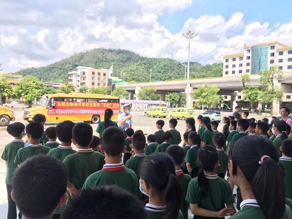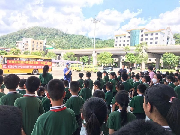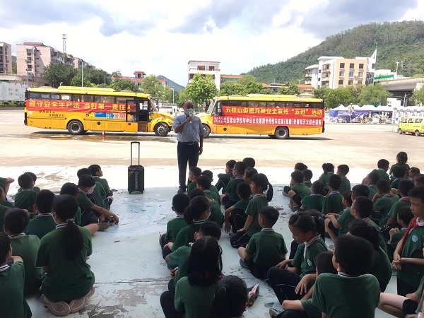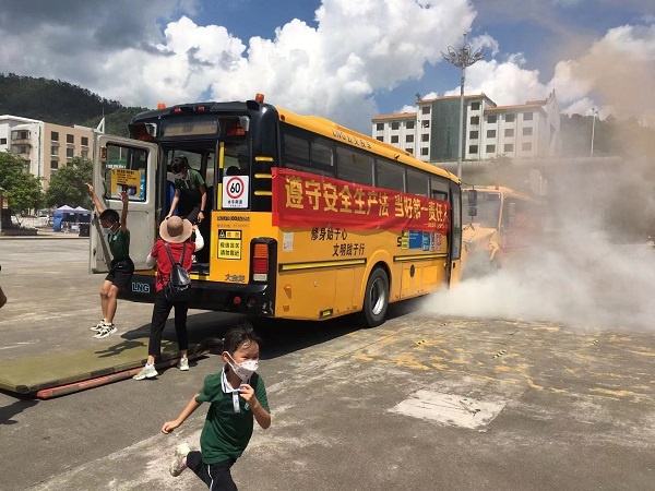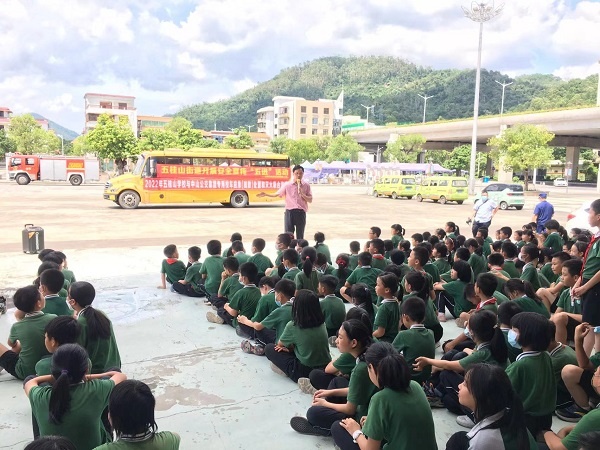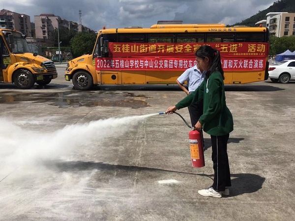 為學(xué)習(xí)貫徹習(xí)近平總書(shū)記關(guān)于安全生產(chǎn)的指示批示精神,落實(shí)國(guó)家《校車安全管理?xiàng)l例》,提高同學(xué)們乘坐校車安全意識(shí),2022年6月24日,五桂山學(xué)校聯(lián)合中山市公共交通運(yùn)輸集團(tuán)有限公司、五桂山消防大隊(duì)、交警大隊(duì)開(kāi)展了2022年專用校車應(yīng)急(疏散)處置和滅火演練,五桂山學(xué)校所有乘坐校車的學(xué)生現(xiàn)場(chǎng)觀摩此次演練。