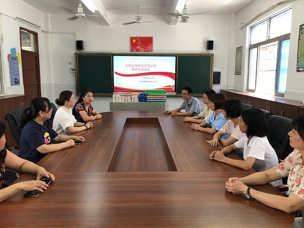 捐贈儀式結(jié)束后,雙方行政及教師代表就下學(xué)期幫扶工作展開深入交流,對進(jìn)一步落實(shí)幫扶計劃達(dá)成了共識,明確了幫扶共建的措施和目標(biāo),確保結(jié)對幫扶工作的順利開展。針對下一步的幫扶工作,李萌校長說:“五桂山學(xué)校將持續(xù)貫徹落實(shí)省教育廳精神,從實(shí)際出發(fā)依據(jù)學(xué)校資源優(yōu)勢,今后擬在學(xué)科管理水平、其它學(xué)科教育教學(xué)、業(yè)務(wù)素質(zhì)、辦學(xué)條件等方面加大幫扶力度,選派優(yōu)秀黨員干部前往大溝小學(xué)開展形式多樣的幫扶活動,邀請大溝小學(xué)的行政老師到五桂山學(xué)校交流學(xué)習(xí),全面落實(shí)幫扶任務(wù)。”