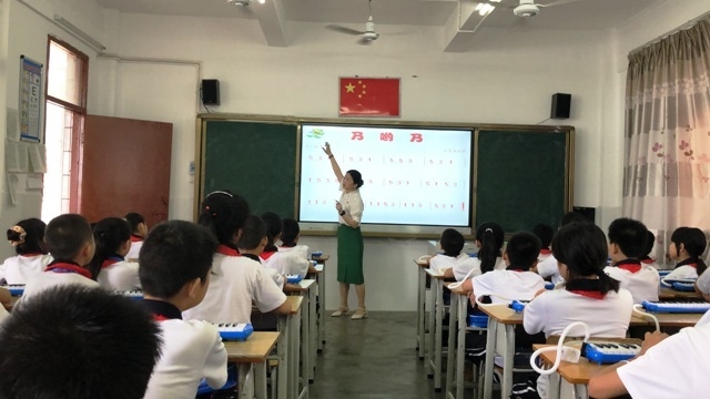 課堂上,林老師先帶領(lǐng)孩子們一起欣賞五桂山學(xué)?!傲弧眱和?jié)口風(fēng)琴比賽視頻,引起孩子們強(qiáng)烈的興趣。接著,林老師通過教學(xué)吹奏土家族民歌《乃喲乃》,對此前教授的吹奏口風(fēng)琴的基本要領(lǐng)、基本指法再次進(jìn)行了強(qiáng)化訓(xùn)練,還重點(diǎn)訓(xùn)練了孩子們視唱、節(jié)奏、節(jié)拍以及歌唱時呼吸的運(yùn)用等基本音樂要素。整節(jié)課孩子們十分認(rèn)真,學(xué)習(xí)興趣非常濃厚,下課鈴響后還戀戀不舍地圍著林老師討教。大溝小學(xué)師生對這堂音樂課贊不絕口。