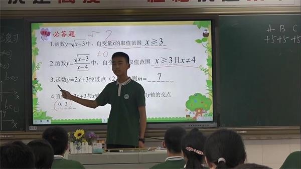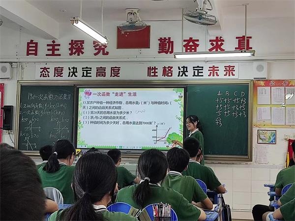 活動中,課題主持人李艷杰老師為大家提供了八年級《一次函數(shù)》研討課。李老師的課堂很好地運用了以“技”促“教”,技教融合創(chuàng)新。希沃數(shù)學畫板的動態(tài)演示圖以及挑戰(zhàn)性游戲等,有效地促進了學生學習數(shù)學的熱情。李老師的課堂不是“獨角戲”,而是讓學生先在小組內(nèi)進行有效合作,然后推薦“小老師”上臺講解,把講臺讓給學生,教師退于幕后適時穿插點評,對重點知識進行提煉、整合。課堂上,學生活而不亂,臺上“小老師”有模有樣,臺下學生認真傾聽,并加以補充或進行糾正,孩子們在四十分鐘里樂學、巧學、活學,課堂氣氛非常活躍,學生的創(chuàng)造力和提問力得到釋放。