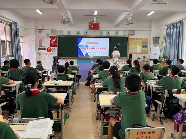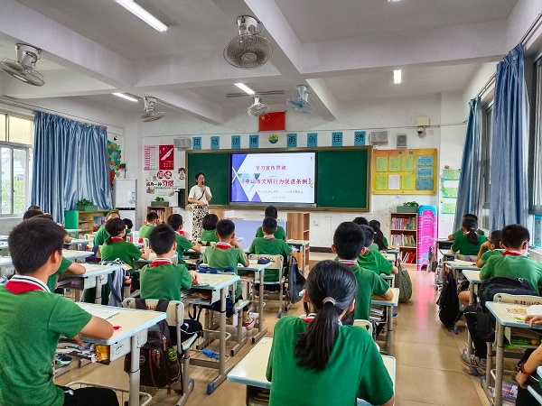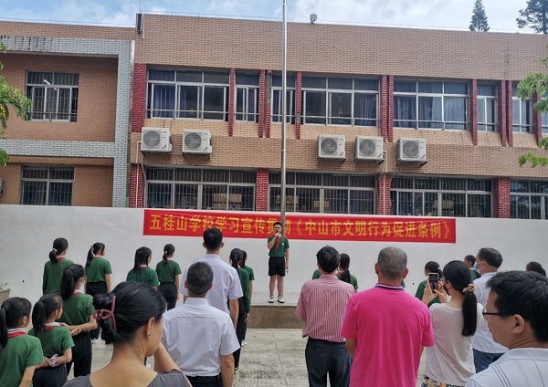 為加強(qiáng)未成年人思想道德建設(shè),全面提升全校師生的道德素質(zhì),使廣大師生深刻理解和把握文明行為的精神內(nèi)涵, 5月30日,五桂山學(xué)校開展了《中山市文明行為促進(jìn)條例》進(jìn)校園系列活動。學(xué)校通過國旗下講話和主題班會活動積極宣傳條例,號召廣大師生做新時代的文明中山人。