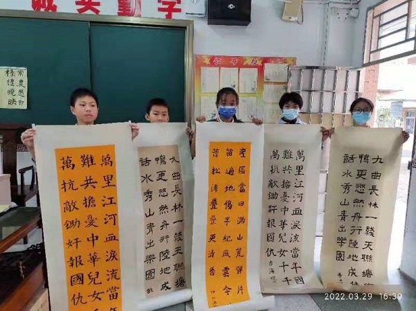 本次主題教育活動內(nèi)容豐富、形式多樣。各中隊輔導(dǎo)員利用班隊課時間給隊員們上了一堂生動形象的紀(jì)念先輩、緬懷英烈主題班會。有的中隊輔導(dǎo)員通過講故事讓隊員們認(rèn)識英雄先烈;有的讓隊員們講述自己知道的英烈故事;有的組織隊員們觀看紅色電影,以此表達(dá)對先烈的崇敬之情;有的利用網(wǎng)絡(luò)資源,發(fā)動隊員們通過網(wǎng)絡(luò)平臺向革命先烈留言祈福、鞠躬獻(xiàn)花,表達(dá)自己的緬懷與感恩。此外,少先隊還組織隊員們以“緬懷革命先烈 傳承紅色基因”為主題進(jìn)行書畫創(chuàng)作。隊員們通過繪畫、瀝粉畫、書法等的方式表達(dá)對先烈的緬懷之情。據(jù)悉,此次活動中表現(xiàn)優(yōu)秀的隊員可以獲得紅領(lǐng)巾獎?wù)乱幻丁?/p>