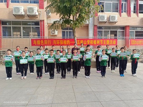 “綠水青山就是金山銀山?!杯h(huán)境就是民生,青山就是美麗,藍(lán)天也是幸福。要像保護(hù)眼睛一樣保護(hù)生態(tài)環(huán)境,像對(duì)待生命一樣對(duì)待生態(tài)環(huán)境。五桂山學(xué)校是廣東省綠色學(xué)校,在植樹節(jié)到來之際,為了更好的保護(hù)校園生態(tài)環(huán)境,五桂山學(xué)校大隊(duì)委開展了“認(rèn)養(yǎng)一棵樹”主題教育活動(dòng)。