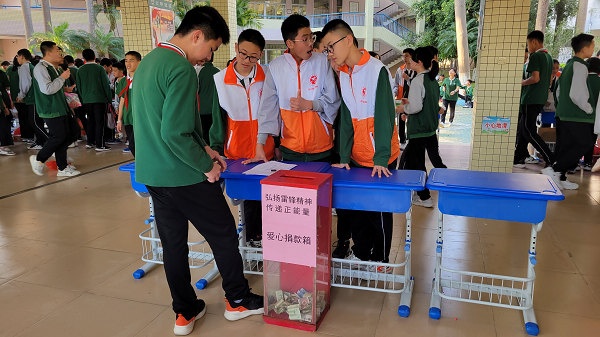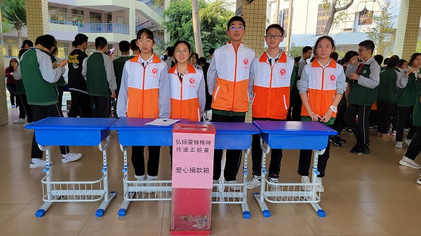 在中國共產(chǎn)主義青年團成立100周年之際,為紀念第60個學雷鋒紀念日,以促進學生成長為出發(fā)點,引領全校廣大師生學習雷鋒精神,參與志愿服務,在服務中奉獻社會、提升自我,踐行社會主義核心價值觀,倡導社會文明新風,豐富校園生活,鍛煉和提高學生的自我管理和組織能力,培養(yǎng)團隊合作精神,樹立關愛他人的意識,養(yǎng)成樂于助人、樂于奉獻的良好品質(zhì)。2022年3月3日下午,五桂山學校德育處和團委聯(lián)合在中學部一樓大廳開展以“弘揚雷鋒精神,喜迎建團百年”義賣義捐活動。全校師生積極參與,捐款捐物、購買義賣品,奉獻愛心。