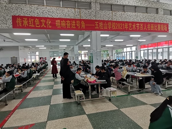 為了加強(qiáng)校園文化建設(shè),豐富同學(xué)們的課余文化生活,培養(yǎng)學(xué)生寫(xiě)規(guī)范字的習(xí)慣,發(fā)掘?qū)W生的繪畫(huà)潛能,提高學(xué)生的審美和鑒賞能力,12月21日,五桂山學(xué)校舉辦了以“傳承紅色文化,唱響奮進(jìn)號(hào)角”為主題校園藝術(shù)節(jié)書(shū)畫(huà)比賽。近300學(xué)生現(xiàn)場(chǎng)進(jìn)行軟筆書(shū)法、硬筆書(shū)法和繪畫(huà)比賽。