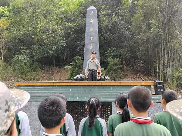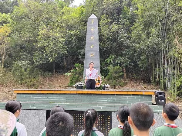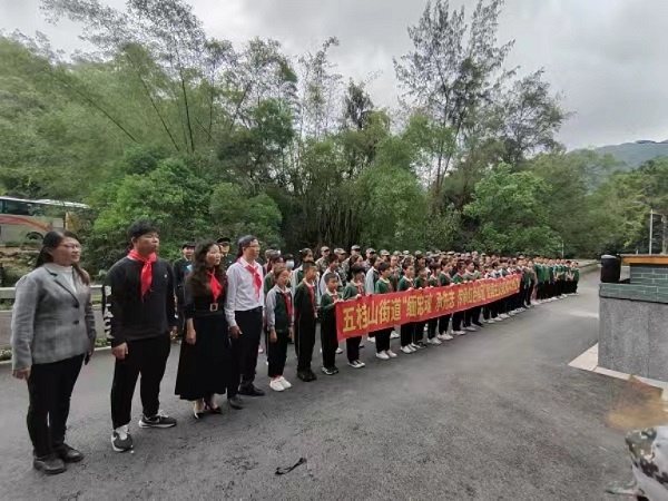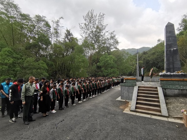 逝者遠(yuǎn),生者念,緬忠魂,承先志,又是一年清明時(shí)。為深切緬懷革命先烈豐功偉績(jī),用好用活紅色文化陣地,引導(dǎo)學(xué)生銘記歷史,進(jìn)一步傳承紅色基因,激發(fā)愛(ài)國(guó)熱情,樹(shù)立遠(yuǎn)大理想信念,2023年4月4日下午,五桂山學(xué)校黨支部、團(tuán)委、少先大隊(duì)聯(lián)合五桂山街道團(tuán)工委、少工委、武裝部、關(guān)工委、公共服務(wù)辦共同前往五桂山石瑩橋革命烈士紀(jì)念碑祭掃,開(kāi)展“緬忠魂 承先志 傳承紅色基因”清明節(jié)紅色主題教育祭奠活動(dòng)。