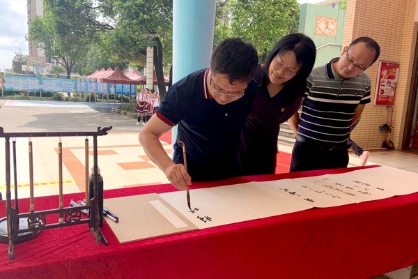 據(jù)悉,小欖豐華學校的毛筆書法教育開展得比較早。早在2009年該校以校園書法社團活動的形式推進校園書法教育。后來,該校又采取聘請專業(yè)老師、外聘專家、培養(yǎng)一專多能的教師等舉措,落實“全員書法”,行政、老師、學生齊上陣,帶動了許多家長也參與到學書法中來。小欖豐華學校的書法教育的步伐越走越堅定,路子越走越寬,成果不斷涌現(xiàn)。師生在市鎮(zhèn)級以上的各級書法專業(yè)大賽中每年都有超過300人次的獲獎。先后在北京太廟、廣東省立圖書館、中山市美術(shù)館、小欖鎮(zhèn)藝術(shù)館等場所,舉辦了“翰墨豐華”系列師生書法展多場,書法教育碩果累累。今天,翰墨豐華·中山市小欖豐華學校2020屆畢業(yè)生代表書法作品展的成功舉辦,是該校書法藝術(shù)教育進程中的一個美麗的注腳,是該校書法教育的又一個可喜的成果。