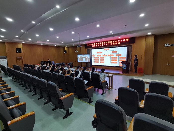 開班儀式在宣傳片《活力小欖》的視頻中拉開帷幕,短短幾分鐘的視頻,讓遠(yuǎn)道而來的盤州市的教育同仁感受到小欖在經(jīng)濟(jì)和教育方面的飛速發(fā)展。李威老師向與會(huì)領(lǐng)導(dǎo)老師們明確了本次跟崗學(xué)習(xí)的意義和學(xué)習(xí)內(nèi)容安排,并希望通過學(xué)校之間辦學(xué)理念的交流、管理經(jīng)驗(yàn)的分享、課堂教學(xué)互動(dòng)研討、兩地教師聯(lián)動(dòng)教研等形式,盤州教育同仁能深度融入小欖鎮(zhèn)教師群體和教育教學(xué)工作,促進(jìn)粵貴兩地教育觀念互通、思路互動(dòng)、技術(shù)互學(xué)、作風(fēng)互鑒。