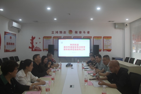 隨著廣東省推動(dòng)基礎(chǔ)教育高質(zhì)量發(fā)展行動(dòng)的不斷發(fā)展和深入,2023年3月24日,潮州市潮安區(qū)楓洋初級(jí)中學(xué)領(lǐng)導(dǎo)和骨干教師一行四人,由蘇偉文校長帶領(lǐng),來到小欖鎮(zhèn)第一中學(xué)開展教育、教學(xué)交流活動(dòng)。小欖一中黨支部書記、常務(wù)副校長楊青華及全體師生熱烈歡迎楓洋中學(xué)同行們的到來,并通過現(xiàn)場(chǎng)觀摩、座談交流、課堂實(shí)踐、教學(xué)研討等方式,向同行們?nèi)轿徽故玖诵煲恢腥粘5慕虒W(xué)管理模式以及師生們積極向上的精神風(fēng)貌。兩校務(wù)求加強(qiáng)幫扶和互訪,進(jìn)一步提升彼此的教育、教學(xué)及管理水平。