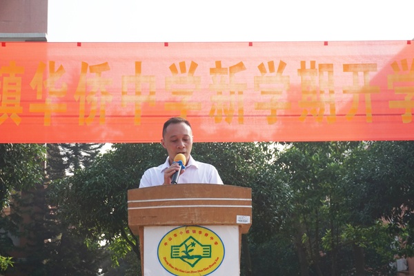 最后是歐潤添校長為新學(xué)期開學(xué)致辭。歐校長首先用熱情洋溢的話語歡迎初一級新同學(xué)的到來,給僑中這個溫暖的大家庭注入新鮮的血液。歐校長的講話,既對過去一學(xué)期學(xué)校取得的各項成績給予了充分的肯定,也對全體師生新學(xué)期的發(fā)展提出了要求和希望。他指出學(xué)校2020學(xué)年的工作主題是:強(qiáng)質(zhì)量、樹品牌、謀發(fā)展。圍繞著“質(zhì)量與品牌年”的中心主題,對同學(xué)們提出了四點要求:1.銘記歷史,愛我中華;2.積極參與,播撒文明;3.養(yǎng)成習(xí)慣,提高素養(yǎng);4.書香校園,閱讀成長。他勉勵全體師生要以嶄新的面貌、飽滿的熱情、積極的態(tài)度、刻苦的學(xué)習(xí)揚帆啟航,迎接新的學(xué)期,新的挑戰(zhàn),在新的起跑線上用勤奮與智慧書寫新的篇章。