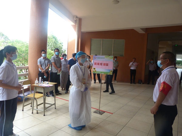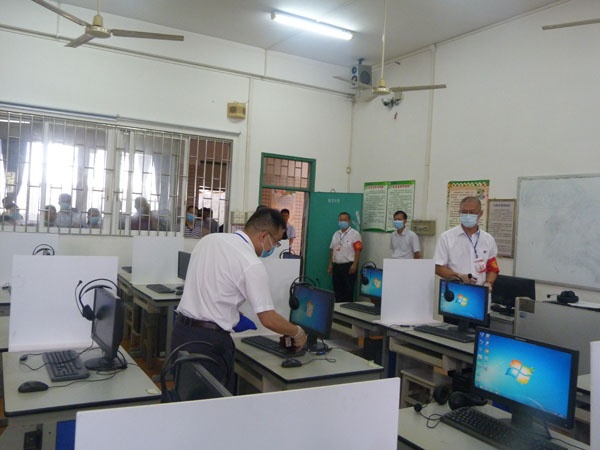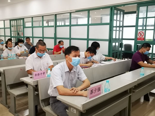為確保中山市2020年英語聽說考試小欖考區(qū)各項(xiàng)工作的順利進(jìn)行,配合防疫工作的需要,完善應(yīng)急處置工作機(jī)制,提高快速反應(yīng)能力和應(yīng)急處置效率,使2020年中考英語聽說考試工作各環(huán)節(jié)操作有章可循,達(dá)到“安全、準(zhǔn)確、按時(shí)、守紀(jì)、高效、有序”的工作目標(biāo),小欖華僑中學(xué)于6月22日上午承辦了小欖考區(qū)英語聽說考試應(yīng)急處置演練活動(dòng)和市考務(wù)視頻培訓(xùn)會(huì)議(小欖考區(qū))。參與本次活動(dòng)的有小欖鎮(zhèn)教育和體育事務(wù)指導(dǎo)中心蘇少強(qiáng)主任、曾文春副主任等領(lǐng)導(dǎo),以及各考點(diǎn)主考及考務(wù)工作人員。