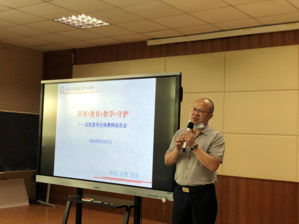 會(huì)上,李校長首先肯定了前階段學(xué)校疫情防控工作和返校準(zhǔn)備工作取得的階段性成效。他指出,防控?zé)o小事,責(zé)任重于泰山,學(xué)校全體教師要始終堅(jiān)持防控疫情和教育教學(xué)兩手抓、兩手都要硬;然后,李校長重點(diǎn)傳達(dá)了《廣東省2020年春季學(xué)期中小學(xué)全面復(fù)學(xué)準(zhǔn)備工作評估導(dǎo)則》和西區(qū)人民政府、文體教育局、衛(wèi)生院復(fù)學(xué)工作會(huì)議精神,要求全體教師要高度重視,明確職責(zé),細(xì)之又細(xì),嚴(yán)之又嚴(yán),扎扎實(shí)實(shí)做好返校復(fù)學(xué)各項(xiàng)準(zhǔn)備工作;隨后,李校長結(jié)合會(huì)議及導(dǎo)則進(jìn)行了工作任務(wù)、工作紀(jì)律分解和說明,從全局上對復(fù)課工作做了全方位的部署,學(xué)校多個(gè)部門各司其職,從疫情防控措施、各種專項(xiàng)排查的分工、校園安全保障等方面做了詳盡細(xì)致的講解。同時(shí),他嚴(yán)格要求全體教師要科學(xué)有序地推進(jìn)返校復(fù)課工作,有針對性地指導(dǎo)學(xué)生的返校工作,做好線上教學(xué)與線下教學(xué)的有效銜接,做好學(xué)生的心理疏導(dǎo)工作,確保學(xué)生以積極樂觀的態(tài)度投入到學(xué)習(xí)當(dāng)中來。