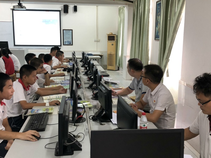 信息技術(shù)組:“設(shè)置明天的理想,存儲永遠(yuǎn)的信心?!闭珉娔X室貼的標(biāo)語,信息技術(shù)學(xué)科三位青年教師,根據(jù)所教年級,從初一、初二、初三教材中,選取“計(jì)算機(jī)資源”“交互設(shè)計(jì)”“數(shù)據(jù)圖表化”三個(gè)內(nèi)容,分別創(chuàng)設(shè)“雙11”購買電腦怎樣查看配置、制作精美的自我介紹ppt、圖表顯示打字成績等情境,以學(xué)生自學(xué)、獨(dú)立操作為主,老師點(diǎn)撥為輔,通過一些積極向上的、正能量的文檔、文稿、圖片、音頻、視頻等素材,引導(dǎo)學(xué)生樹立遠(yuǎn)大理想、增強(qiáng)自我信心。整個(gè)比賽,緊張有序,氣氛活躍。