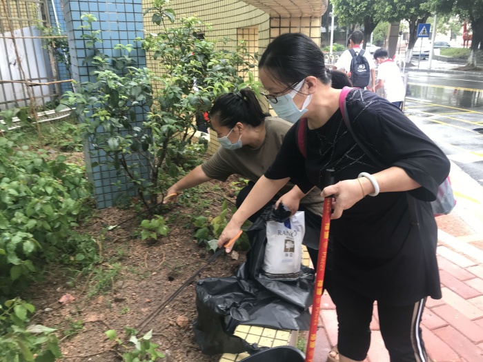 早晨7點30分,志愿者們就帶上掃帚、垃圾鏟、火鉗、手套等清潔工具回到學校,根據(jù)學校創(chuàng)文工作小組的規(guī)劃,分工合作,落實責任。中山一中西區(qū)中學范振海校長等行政帶領志愿者們對每一個區(qū)域進行排查,撿拾垃圾,清理雜物。從辦公室到大操場,從衛(wèi)生間到飲水機,從校外人行道到周圍樓盤,每一個角落,都有志愿者擼起袖子加油干的身影。大家充分發(fā)揚不怕苦、不怕臟、不怕累的精神,仔細地清掃校園內(nèi)外,不放過任何一處,讓衛(wèi)生死角的垃圾、頑固塵埃、污漬無處藏身。