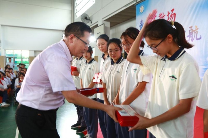 學校家委代表劉蒼虎先生發(fā)言,他代表全體家委、代表初三所有的家長,對中山一中西區(qū)中學表示感謝,劉先生深情地感謝范校帶領(lǐng)的領(lǐng)導班子、教職工們的辛勤付出,感謝學校領(lǐng)導、老師、職工們給予孩子們家庭般的溫暖和關(guān)懷,感謝他們用愛和責任,為孩子們奉獻自己全部的力量與情感,為孩子撐起了一片廣袤的藍天! 而后,范振海校長向初三年級家委頒發(fā)證書留念。