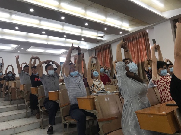 隨后趙博士現(xiàn)場教大家學(xué)習(xí)頸椎病預(yù)防保健操:左顧右盼、前后點(diǎn)頭、搖頭晃腦、旋肩舒頸、頭手相抗、毛巾抵抗、雙手托天理三焦,動作簡單易學(xué),在趙博士帶領(lǐng)下,老師們認(rèn)真學(xué)習(xí),用心感受,會場里笑聲陣陣,經(jīng)過模仿和實(shí)踐,老師們頓時(shí)感覺緊張酸痛的頸椎得到很好的緩解。
