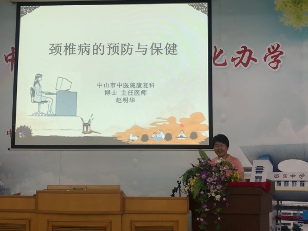 為有效緩解教師的心理壓力,疏導(dǎo)緊張、焦慮的情緒,提高教師的心理健康素質(zhì),增強(qiáng)教師職業(yè)幸福感,2020年5月22日,中山一中西區(qū)中學(xué)特邀中山市中醫(yī)院康復(fù)科主任醫(yī)師趙明華博士為全體教師帶來了一場對生活和工作有著重要作用的講座——《頸椎病的預(yù)防與保健》。