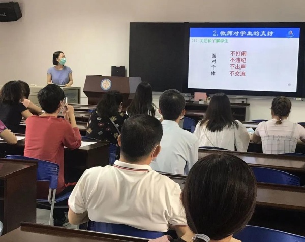 培訓(xùn)會的第一項內(nèi)容就是由心理老師雷靜婷帶來的《守望相助,共筑心晴天》的心理健康建設(shè)的專業(yè)培訓(xùn)課。當(dāng)陸續(xù)公布學(xué)生返校時間并對學(xué)生提出相應(yīng)要求后,中山一中西區(qū)中學(xué)心理教師借助專業(yè)監(jiān)測發(fā)現(xiàn),受疫情影響,學(xué)生返校后可能產(chǎn)生緊張、焦慮、敏感、抑郁、狂躁等心理問題。學(xué)生心理健康教育,對危機(jī)學(xué)生實現(xiàn)早發(fā)現(xiàn)、早診斷、早干預(yù),是擺在學(xué)校和每一位教師面前的一件大事。為此每一位老師都應(yīng)該調(diào)試好自己,并掌握必要的專業(yè)知識、積極采取多種方式對學(xué)生進(jìn)行心理疏導(dǎo),引導(dǎo)學(xué)生克服心理障礙,線上教學(xué)與線下校園學(xué)習(xí)平穩(wěn)過渡,確保健康愉快成長。雷老師的培訓(xùn),既有現(xiàn)象分析,更有理論支撐和具體實施措施,提出問題同時很好地解決問題,老師們都覺得收獲很大,紛紛拿手機(jī)拍下具體的實操步驟。