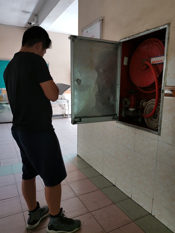 6月12日上午,在檢查消防設(shè)施時(shí),林主任強(qiáng)調(diào):分工合作,檢查工作要細(xì)致,發(fā)現(xiàn)問(wèn)題及時(shí)解決或上報(bào)。具體分工是:林主任負(fù)責(zé)檢查一樓及飯?zhí)玫南涝O(shè)施,林鐘坤老師負(fù)責(zé)檢查教學(xué)樓二樓,羅宇老師負(fù)責(zé)檢查三樓,潘尚真老師負(fù)責(zé)檢查四樓。檢查情況如實(shí)匯報(bào)給林主任。林主任針對(duì)存在的問(wèn)題馬上作出整改,如消防箱里的滅火器不夠,林主任和老師們從庫(kù)房取出補(bǔ)充到相應(yīng)的消防箱里。羅老師在檢查中發(fā)現(xiàn)個(gè)別消防栓的水閥有生銹和被腐蝕的現(xiàn)象,林主任知道后便通知專(zhuān)業(yè)人員進(jìn)行維修。與此同時(shí),潘老師和林老師反映個(gè)別消防栓出水慢和小的問(wèn)題,林主任也全部列出清單進(jìn)行整改,大部分問(wèn)題當(dāng)天已完成整改。