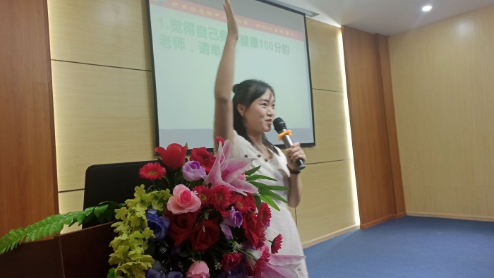 9月18日,心理老師廖艷為全體教師開展了一節(jié)精彩的心理輔導(dǎo)課。廖艷老師通過調(diào)查讓老師們知道心理問題就像感冒一樣,應(yīng)該摒棄偏見,正常面對(duì)。每位老師在廖老師的引導(dǎo)下,寫下自己近期的煩惱和心理感受,思考并寫下解決方案。在歡聲笑語(yǔ)中老師們紛紛表示在今后的教育教學(xué)工作中,將運(yùn)用心理健康知識(shí)及心理輔導(dǎo)技巧幫助學(xué)生樹立陽(yáng)光心態(tài)。