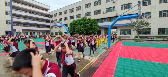 上午8點(diǎn)整,隨著刺耳的防空警報(bào)劃破寧靜的校園上空,整個(gè)校園氣氛突然變得緊張起來,所有教室第一時(shí)間暫停教學(xué),同學(xué)們?cè)诶蠋煹膸ьI(lǐng)下,迅速、有序地跑出了教室,按照預(yù)定的疏散線路撤離至操場的空曠地帶,僅僅用時(shí)3分20秒。