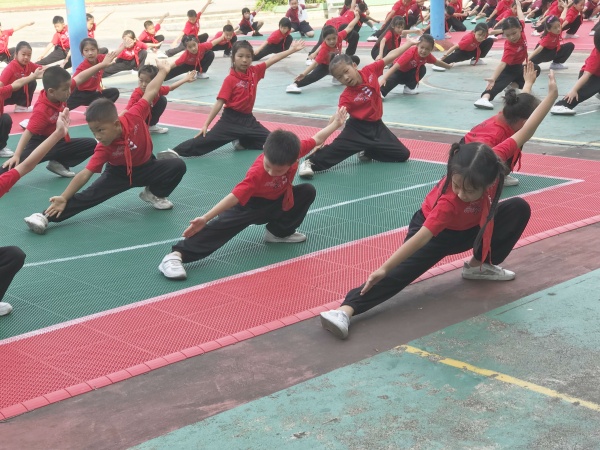 少林武術(shù)文化是中國“和合文化”的杰出代表。愛國、和合、崇德習(xí)武、孝敬師長的少林精神以其獨有的魅力,成為青少年健康成長的寶貴財富。以武育德、以武健體,聚星學(xué)校大隊部積極引導(dǎo)隊員從小練好過硬本領(lǐng),教育隊員要有科學(xué)夢、創(chuàng)造夢和英雄夢,從自己做起、從身邊做起、從小事做起,打好快樂生活,健康成長的基礎(chǔ)。近年來,聚星學(xué)校大隊以“立德樹人”為引領(lǐng),積極探索適合隊員的武術(shù)課程,把弘揚少林武術(shù)文化和隊員的愛國強身、健康成長有機結(jié)合起來,把弘揚少林武術(shù)文化與培養(yǎng)隊員綜合素質(zhì)結(jié)合起來,融文化滲透于學(xué)校教育之中,從小處入手,把大的思想教育具體到每一個活動中去,引導(dǎo)隊員快樂和健康地成長。