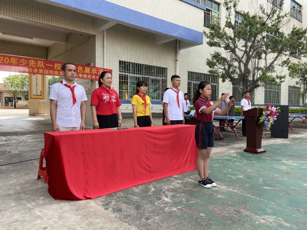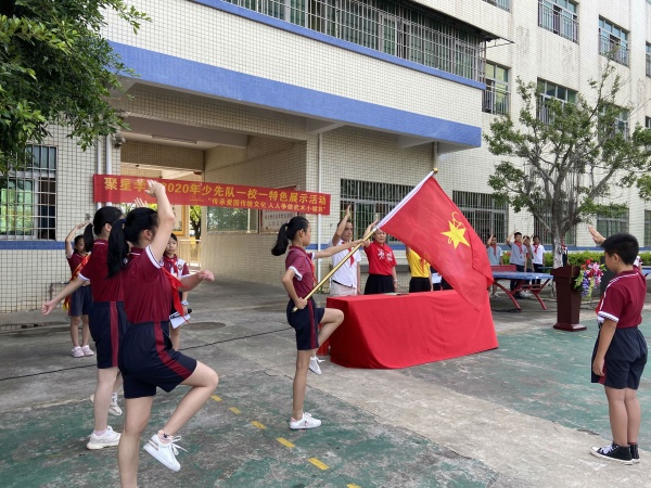 2020年6月29日上午8點15分,聚星學(xué)校大隊部開展少先隊“傳承愛國傳統(tǒng)文化 人人爭做武術(shù)小健將”一校一特色社團展示活動,聚星學(xué)校黨支部書記兼少工委主任路海云女士、黨支部副書記龍詩云女士、小學(xué)教務(wù)處張世鋮主任和聚星學(xué)校少先隊大隊輔導(dǎo)員譚治偉老師一同參加了本次活動。