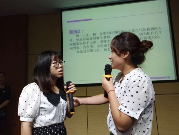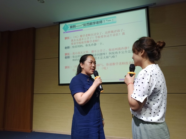 通過學(xué)生與老師、家長(zhǎng)與老師的案例演練,老師們了解到溝通的技巧。理論與實(shí)踐相結(jié)合的模擬場(chǎng)面讓現(xiàn)場(chǎng)氣氛推上高潮。老師們積極參與,與彭老師傾情互動(dòng),精彩表演溝通中的片段故事,現(xiàn)場(chǎng)笑聲不斷,其樂融融。于詼諧幽默中傳授溝通的藝術(shù),在輕松愉悅中提高自己的素養(yǎng)。 其中,在案例二“當(dāng)家長(zhǎng)與老師發(fā)生沖突時(shí),班主任應(yīng)該怎么做?”中,路海云校長(zhǎng)將自己的親身經(jīng)歷帶進(jìn)本次培訓(xùn),讓老師們明白,處理任何糾紛,學(xué)會(huì)傾聽,堅(jiān)持底線,積極溝通,更容易達(dá)成一致。