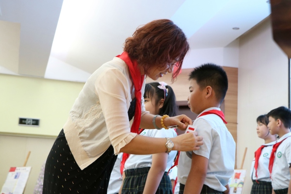當(dāng)天還舉行了新一屆大隊(duì)委員的就職宣誓授標(biāo)活動(dòng)。會上,大隊(duì)輔導(dǎo)員李老師正式宣布新一屆大隊(duì)委名單,隊(duì)員們一一登臺亮相,在全體代表的注目下,西區(qū)總輔導(dǎo)員莊老師、侯潔校長、張文君副校長為新一屆大隊(duì)委員佩戴大隊(duì)委標(biāo)志。在星星火炬隊(duì)旗的印襯下,宋俊航帶領(lǐng)大隊(duì)委們高舉右臂,莊嚴(yán)宣誓,一聲聲鏗鏘有力的宣誓聲,表明了新一屆大隊(duì)委做好大隊(duì)工作的堅(jiān)定決心。李老師表示,戴上隊(duì)標(biāo)意味著大隊(duì)委們肩上的責(zé)任!希望他們在新的舞臺上,能嚴(yán)以律己、模范帶頭,將大隊(duì)工作做好。